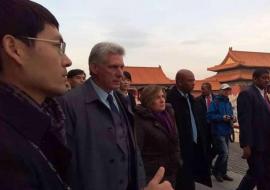 El mandatario cubano, Miguel Díaz-Canel, recorrió este martes la Expo Internacional de Importación, en Shanghái.