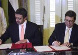 En la mañana del lunes se firmó el Acuerdo entre el Gobierno de la República de Cuba y el Gobierno de Emiratos Árabes Unidos para Servicios Aéreos más allá de sus respectivos territorios.