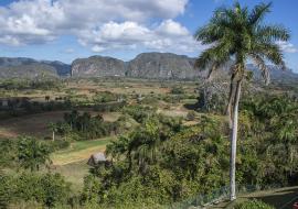 Valle de Viñales, uno de los paisajes más hermosos. Bajando el promontorio se llega al pequeño poblado cabecera, Viñales, fundado en 1868