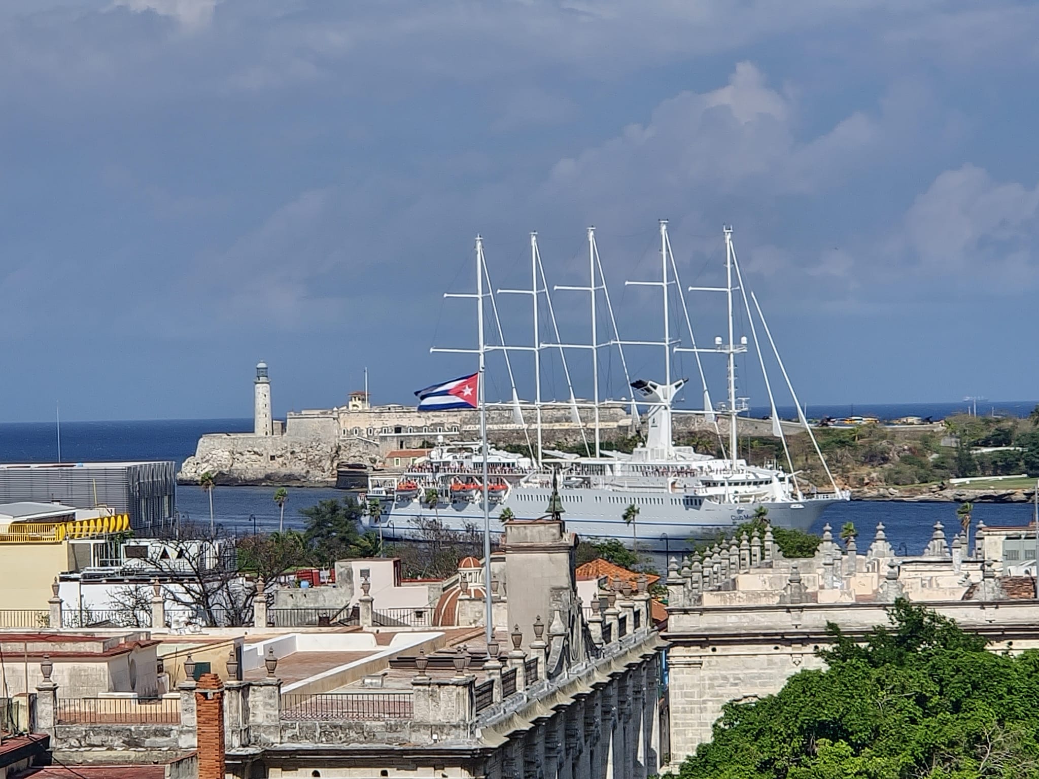 El crucero de lujo Club Med 2, con bandera francesa, atracó este lunes en la bahía de La Habana, capital de Cuba.