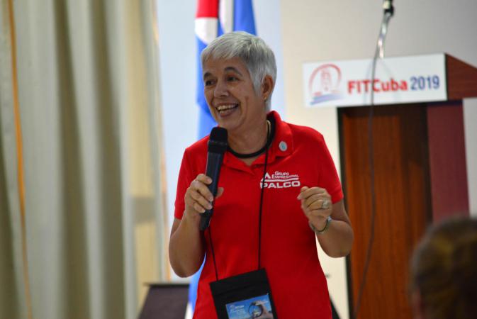 La directora del Grupo empresarial PALCO, Isabel Puebla Rodríguez, presentó a su institución durante la celebración de FITCuba 2019, con un resumen de la historia de PALCO desde la creación del Palacio de Convenciones de La Habana, en 1979, hasta la creación del Grupo que está integrado hoy por 10 empresas.