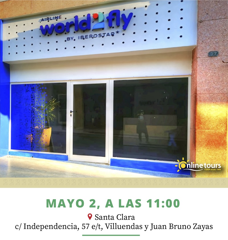 La apertura de la oficina de World2Fly en Santa Clara, con la colaboración de Onlinetours Viajes, el próximo 2 de mayo, forma parte de este compromiso. Ubicada en la calle Independencia 52, tiene una posición estratégica, porque facilita la reserva de vuelos a clientes del centro y el oriente del país, que ya no tendrán que viajar a La Habana para comprar sus billetes. Además, en el futuro inmediato está prevista la apertura de otra oficina de World2Fly en la ciudad de Camagüey, evento que coincidirá con el inicio de la tercera frecuencia de la aerolínea desde Madrid a La Habana.